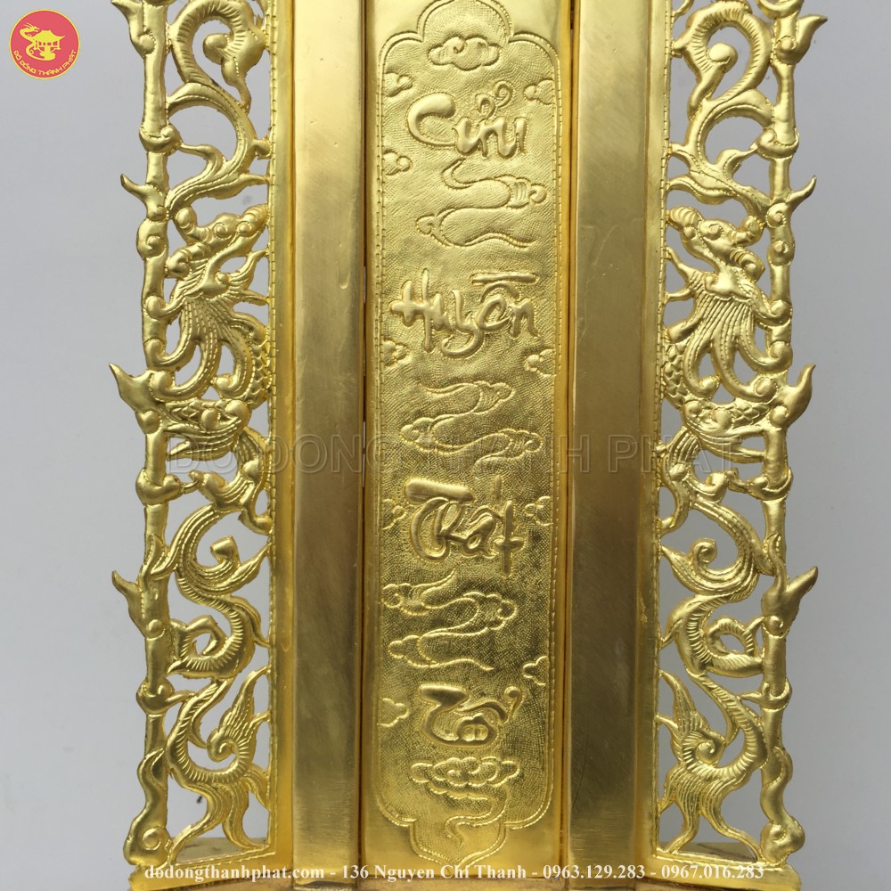 Chi tiết bài vị thờ gia tiên bằng đồng cao 42 cm