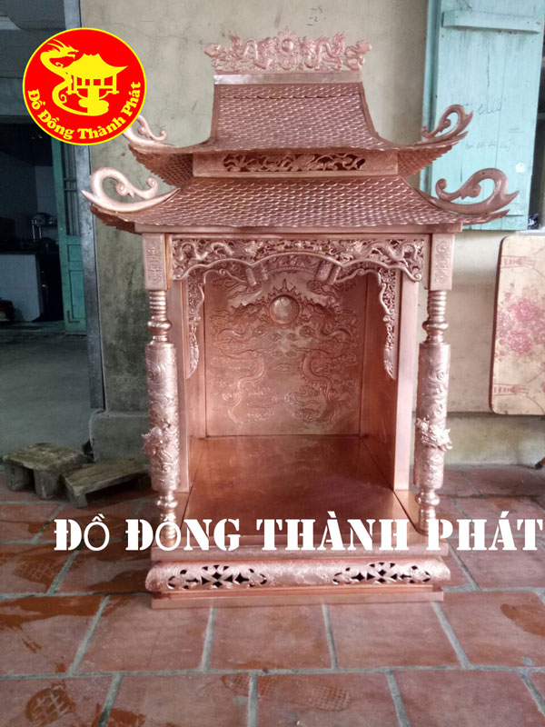 Ban thờ thần tài có chất liệu từ đồng đỏ đẹp, chuẩn đồng cao cấp nhập khẩu từ Hàn Quốc, sản phẩm được gò, thúc tay thủ công tỉ mỉ bởi nghệ nhân để có thể tạo ra ban thờ bằng đồng hoàn thiện đẹp. Màu sắc của ban thờ được để màu hoàn toàn tự nhiên của đồng đỏ đẹp.