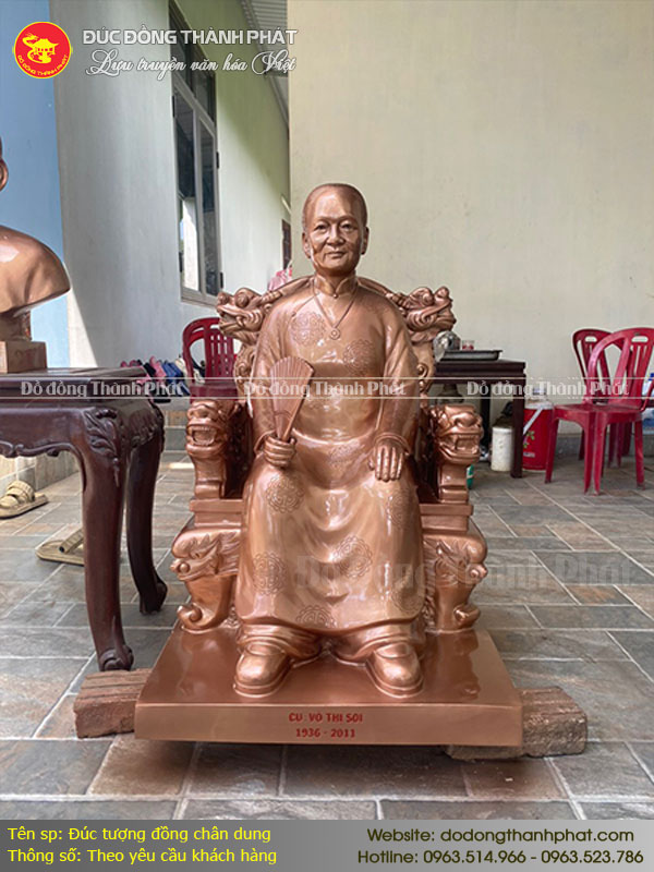 Cuối cùng, chân dung tượng đồng là một hình thức nghệ thuật độc đáo khác. Được đúc theo yêu cầu riêng của khách hàng, mỗi bức tượng chân dung là sự tái hiện chân thực của một nhân vật, thường là để tưởng niệm hoặc kỷ niệm. Tượng chân dung bằng đồng có thể sử dụng để vinh danh công lao của một người nào đó hoặc cũng có thể dùng trong thờ cúng thay cho di ảnh. Đồ đồng Thành Phát sử dụng các kỹ thuật đúc tượng tiên tiến để đảm bảo rằng mỗi chi tiết, từ nét mặt đến biểu cảm, đều được thể hiện một cách sinh động và chính xác nhất.
