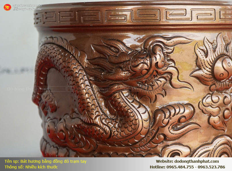 Hơn nữa, nhờ đặc tính dẻo và bền của đồng đỏ, các nghệ nhân mới có thể thực hiện những nhát đục sâu, chạm khắc những họa tiết Rồng, Phượng đầy uy phong và sống động trên bề mặt bát hương. Một sản phẩm hội tụ đủ cả độ nặng, màu sắc đẹp và chất liệu chuẩn chính là sự đầu tư bài bản nhất cho không gian tâm linh của gia đình. Đầu tư một lần nhưng giá trị nhận lại là sự yên tâm cả đời, đó chính là lý do vì sao bát hương đồng đỏ luôn là sự lựa chọn ưu tiên của những gia chủ am hiểu và có tâm với việc thờ phụng tổ tiên.