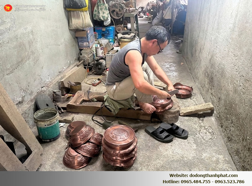 Để tạo nên một bát hương không chỉ để thờ mà còn để ngắm, người nghệ nhân Thành Phát phải trải qua hàng chục giờ lao động miệt mài bên khuôn đúc và những chiếc đục nhỏ bé. Với các bác vốn yêu cầu sự cầu kỳ và chuẩn mực trong từng đường nét, nghệ thuật chạm nổi trên bát hương đồng đỏ chính là minh chứng rõ nhất cho đôi bàn tay tài hoa và cái tâm của người thợ làng nghề truyền thống.