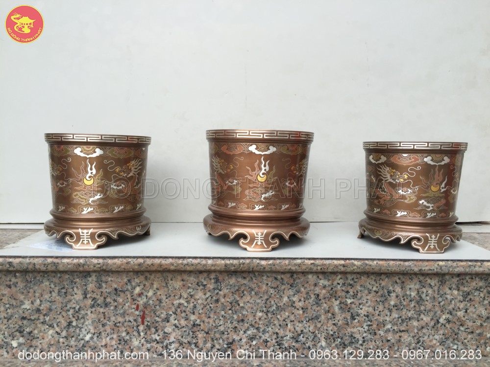 Ba bát hương đồng thờ cúng khảm ngũ sắc