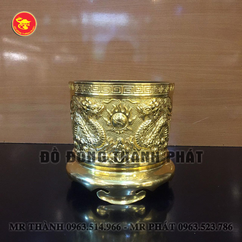 Quý khách vừa xem sản phẩm bát hương bằng đồng mạ vàng cao cấp, nhắc đến các đồ thờ cúng trên bàn thờ gia tiên chúng ta có thể kể thêm một vật dụng khác là lọ cắm hương bằng đồng mạ vàng cao cấp dùng để đựng hương chưa sử dụng,