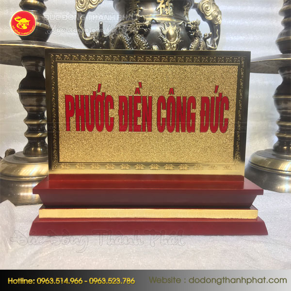 Đồ đồng Thành Phát xin giới thiệu một dòng sản phẩm mới: Biển chức danh mạ vàng, đây là loại biển sang trọng và đạt độ đẳng cấp nhất cho chủ nhân của nó khi sở hữu. Hãy liên hệ trực tiếp với chúng tôi để có giá sản xuất.