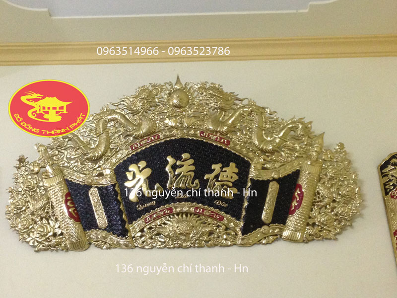 Bộ Cuốn Thư Câu Đối Đồng Vàng " Đức Lưu Quang " 1,76 m Treo Ban Thờ Gia Tiên Đẹp