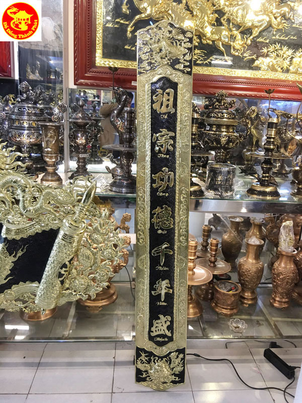 Bộ Cuốn Thư Câu Đối Đồng " Đức Lưu Quang " Bản Đồng 8 Dem Chạm Tay 100 %