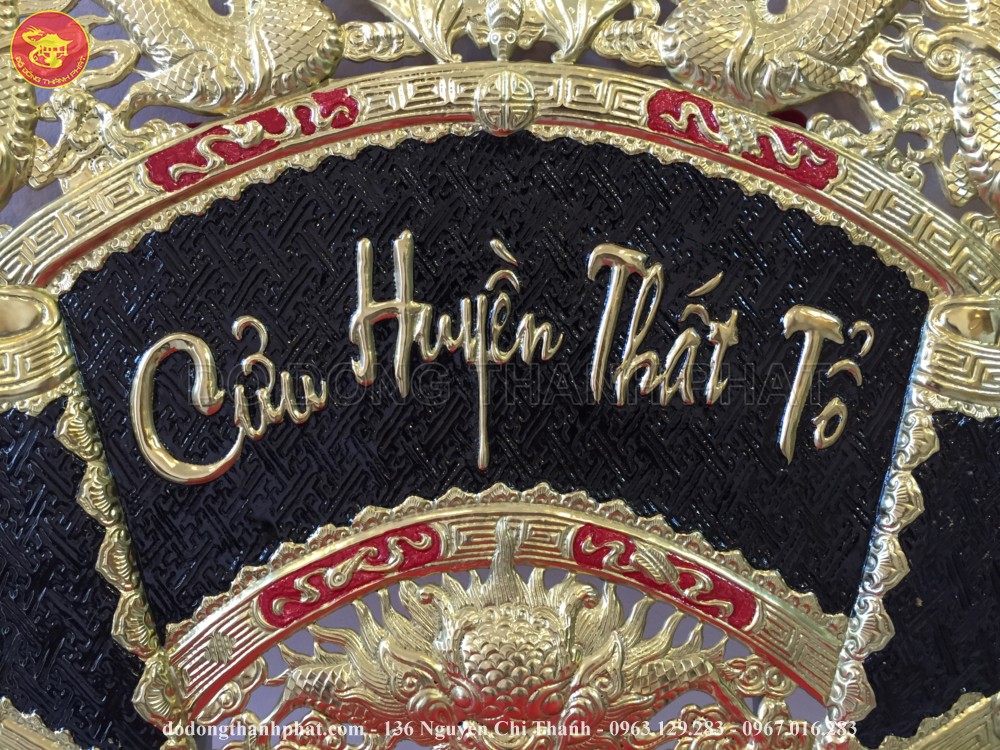 Cuốn thư được khảm chữ Hán Việt " Cửu Huyền Thất Tổ " bằng mặt đồng vàng cao cấp