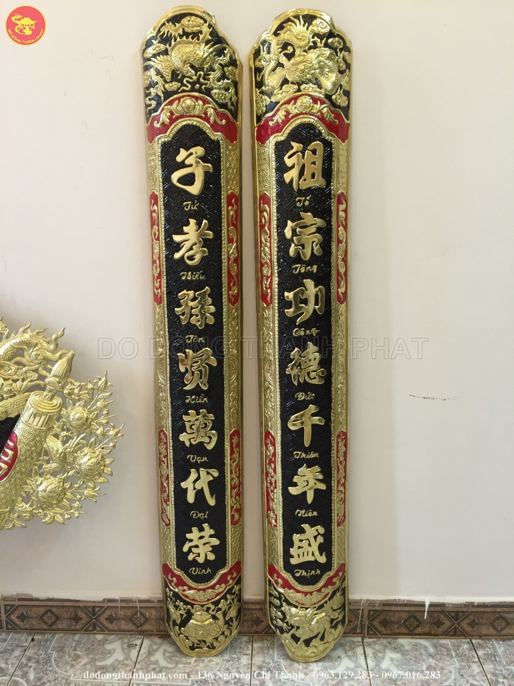 Tên đầy đủ: Bộ Cuốn Thư Câu Đối Đồng Vàng Dài 1,76 m, cao 88 cm