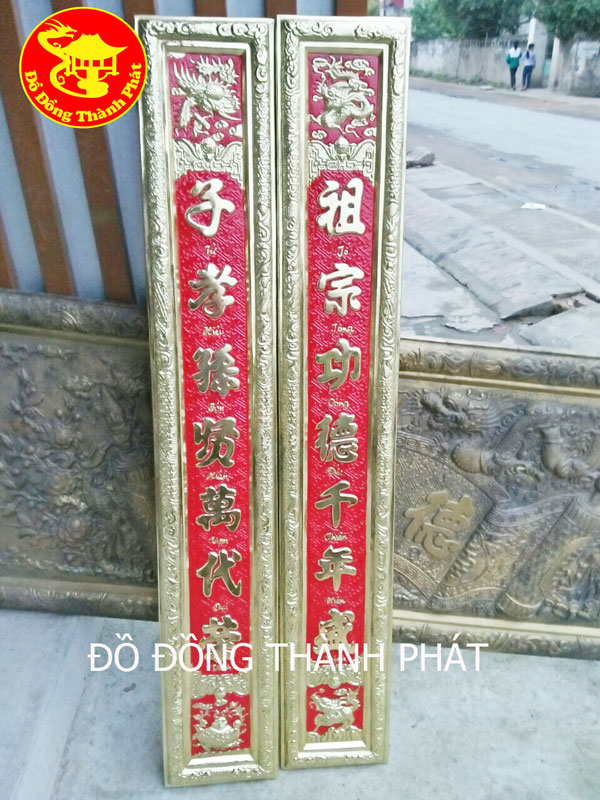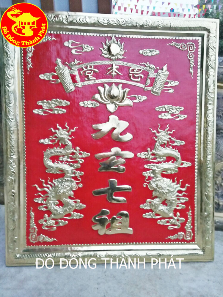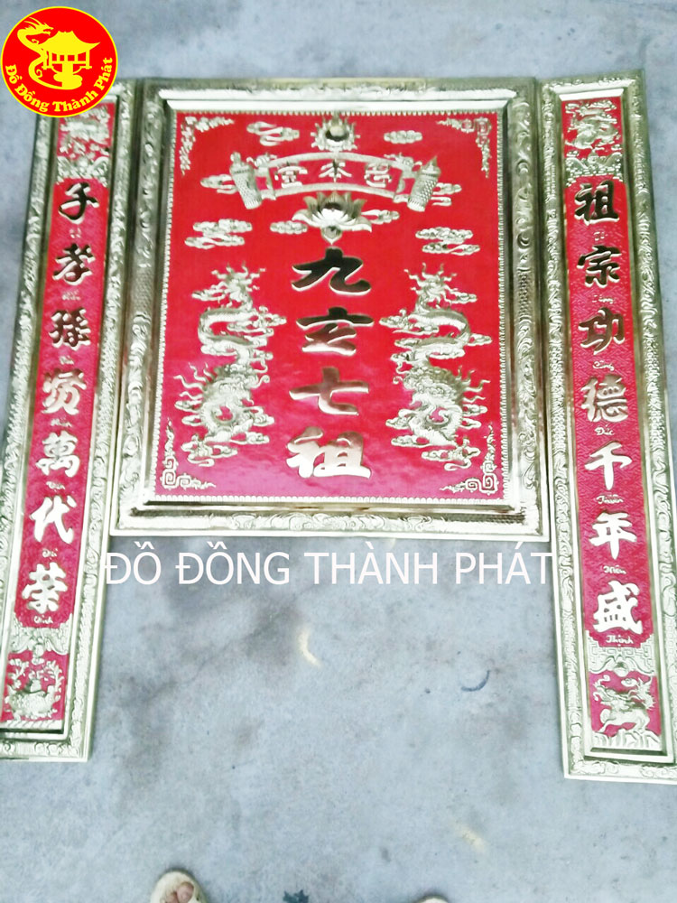 Bộ Cửu Huyền Thất Tổ Chữ Hán Nôm Đi Cùng Với Đôi Câu Đối Bằng Đồng Vàng Hàng Mỹ Kí Đẹp