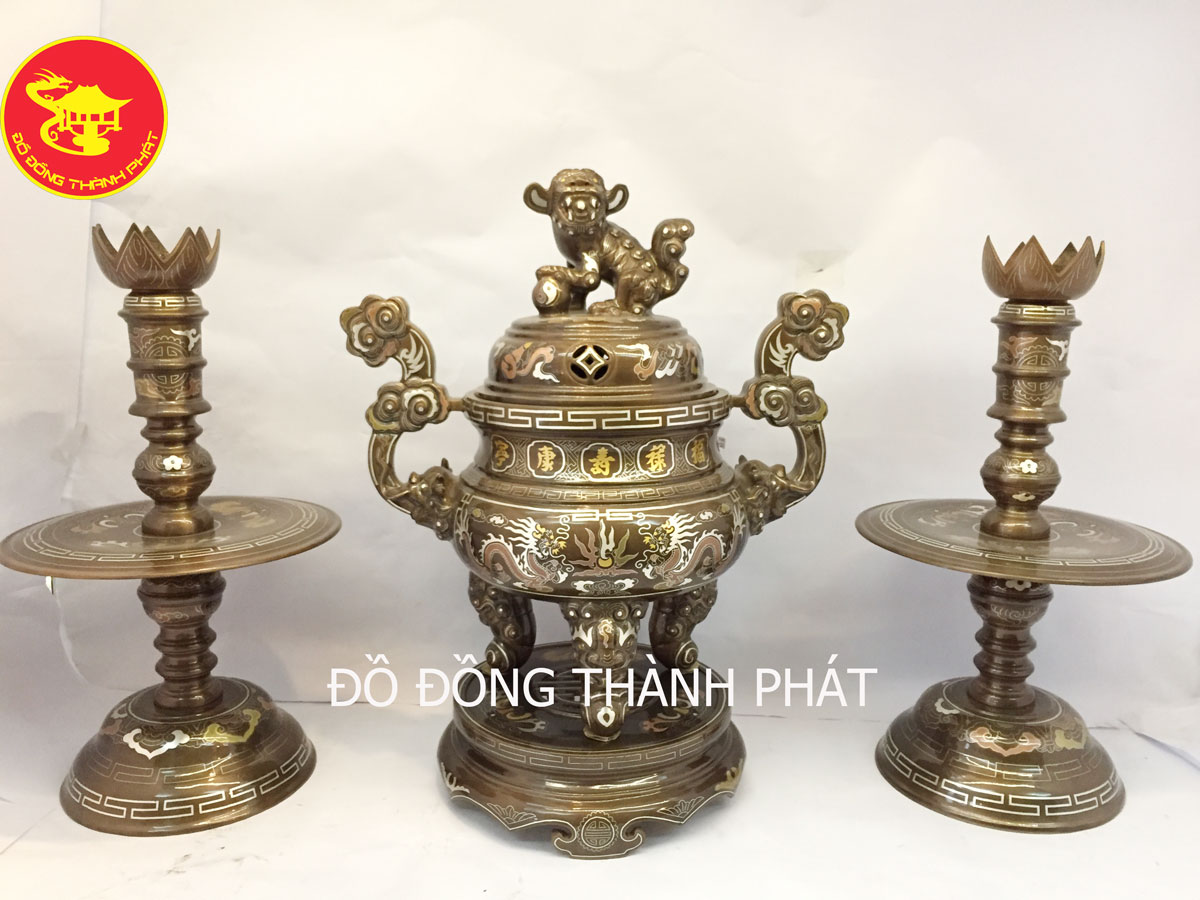 Bộ đồ thờ cúng bằng đồng đỏ khảm ngũ sắc