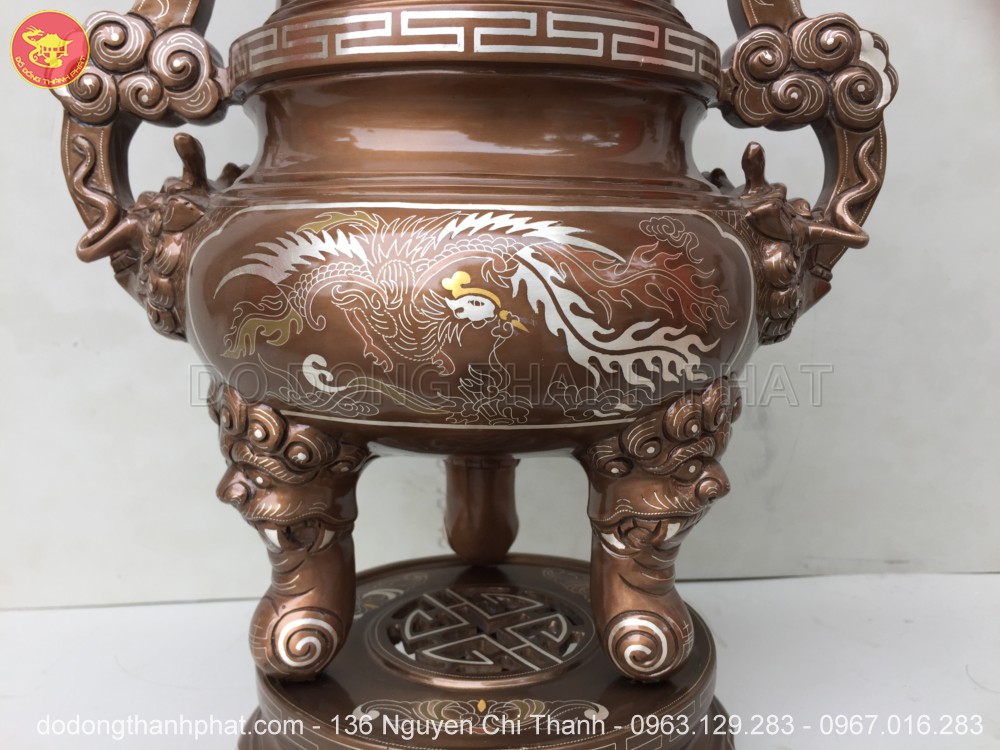 Đỉnh đồng được chạm các nét hoa văn long phụng