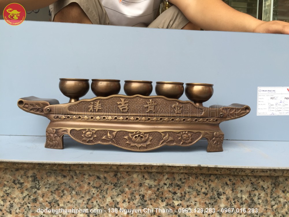 Tên đầy đủ: Bộ ngai 5 chén bằng đồng hun xanh giả cổ