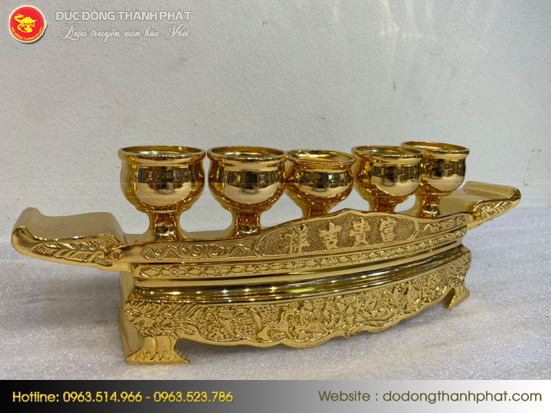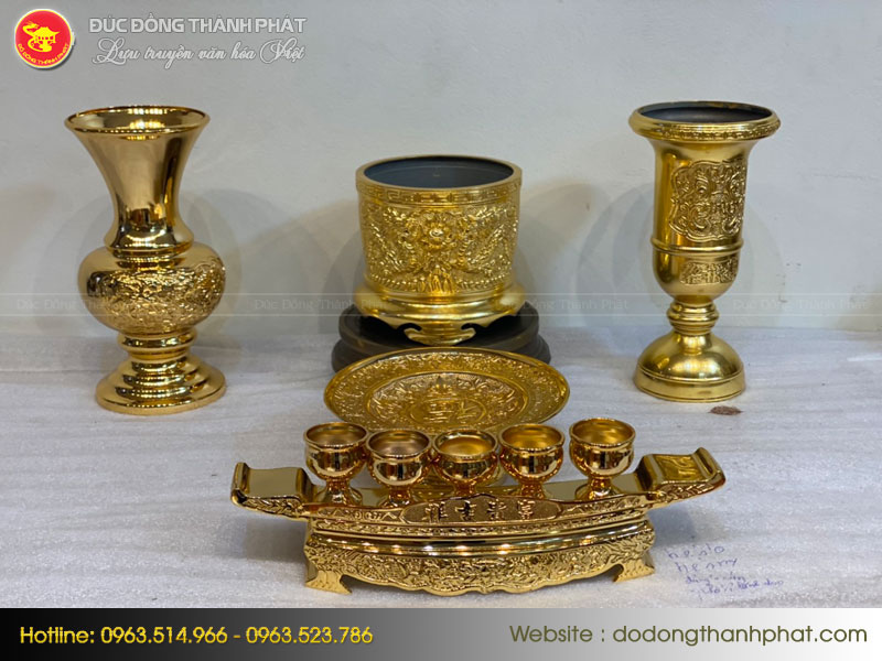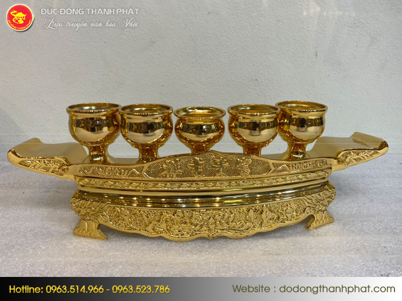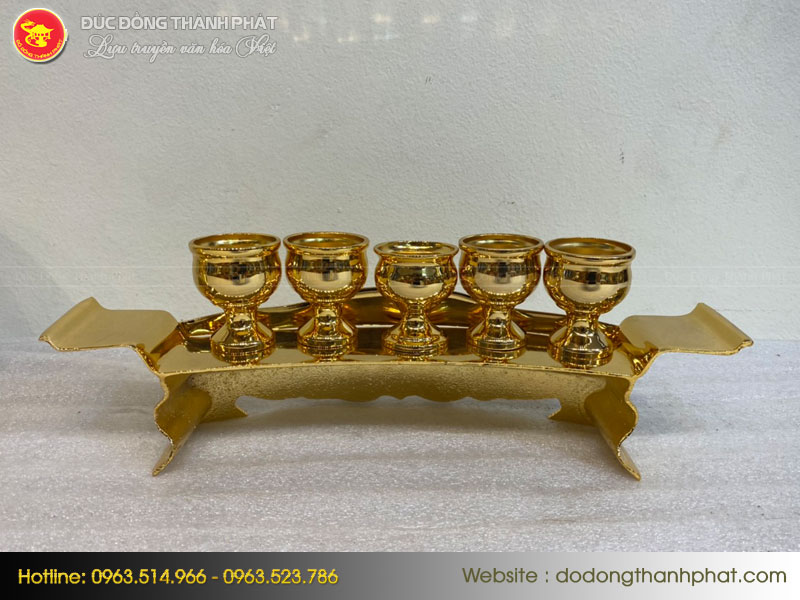 Bộ ngai 5 chén thờ mạ vàng 24k giúp bộ đồ thờ của gia đình bạn thêm đầy đủ và hoàn hảo hơn. Với những đường nét, hoa văn tinh xảo, sản phẩm của đồ đồng Thành Phát xứng đáng là sự lựa chọn hàng đầu của bạn.