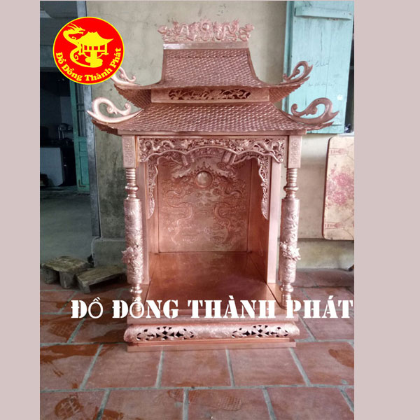 Ban thờ có các chi tiết nổi bật như song long trầu nguyệt, kiểu hai mái che theo nối mái đình chùa của người Việt. Mẫu ban thờ thần tài này phù hợp đặt tại các cửa hàng, cửa hiệu của gia chủ hay đặt tại nhà. Đồ Đồng Thành Phát nhận đặt làm ban thờ thần tài bằng đồng với kích thước, chất liệu đồng theo yêu cầu của khách hàng. Liên hệ với chúng tôi qau sdtd 0963.514.966 để được tư vấn trực tiếp.
