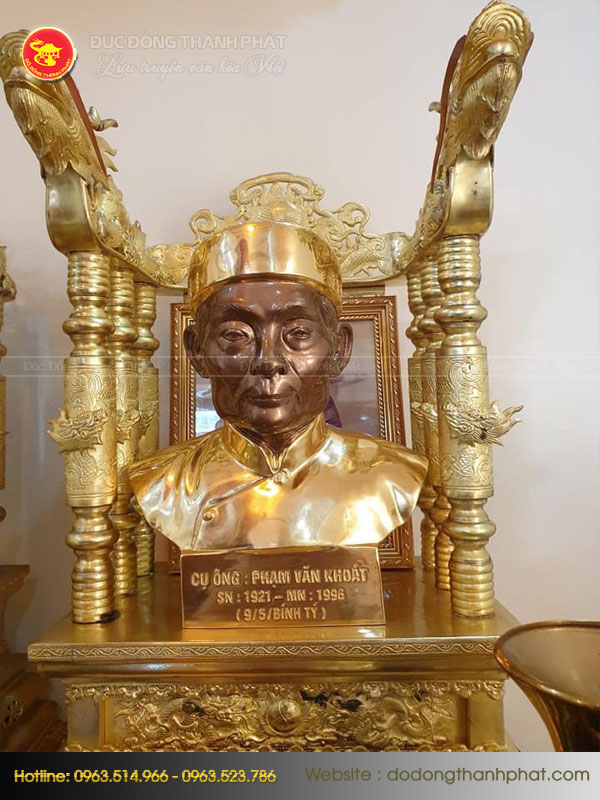 Bộ ngai thờ và tượng bán thân thờ cúng bằng đồng