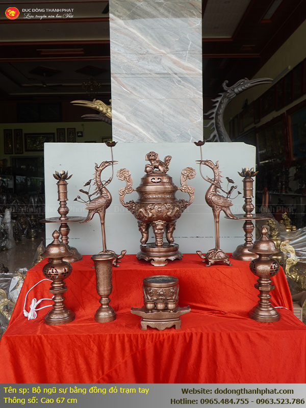 Bộ đồ thờ đầy đủ bằng đồng đỏ nguyên chất 67cm bao gồm những món đồ thờ sau: