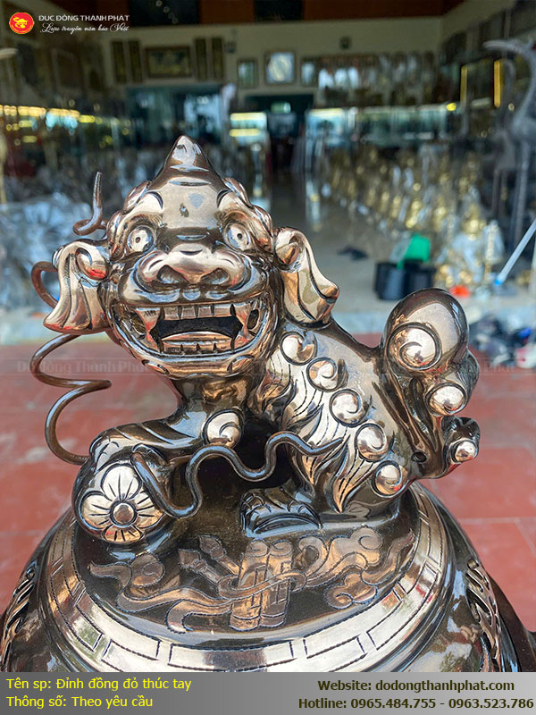 Một trong những điểm nổi bật và đáng tự hào nhất của sản phẩm chính là quy trình chế tác hoàn toàn thủ công. Những người nghệ nhân tại Thành Phát, với kinh nghiệm truyền đời và đôi tay lành nghề, đã trực tiếp thực hiện từng công đoạn – từ nấu đồng, tạo khuôn, đổ khuôn cho đến chạm khắc hoa văn. Mỗi chi tiết đều được chạm tay tỉ mỉ, sắc sảo đến mức có thể cảm nhận bằng mắt thường từng đường nét uốn lượn, từng họa tiết nhỏ nhất. Đây không phải là những sản phẩm được sản xuất hàng loạt bằng máy móc công nghiệp mà là từng tác phẩm độc bản mang đậm dấu ấn cá nhân của người nghệ nhân. Sự công phu và tâm huyết ấy khiến từng bộ Ngũ Sự không chỉ đẹp về hình thức mà còn ẩn chứa linh hồn văn hóa trong từng thớ đồng.
