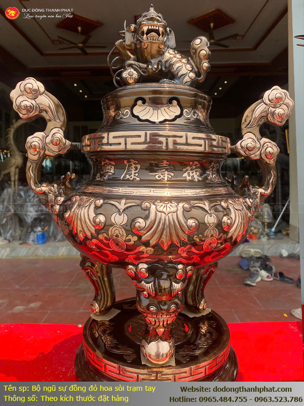 Đồ đồng Thành Phát – với kinh nghiệm lâu năm trong chế tác đồ thờ cúng thủ công – xin trân trọng giới thiệu Bộ Ngũ Sự bằng đồng đỏ được chế tác tinh xảo, được nghệ nhân tay nghề cao trạm thủ công, từng đường nét tỉ mỉ không thể bắt lỗi,mang vẻ đẹp cổ điển, chuẩn mực cho không gian thờ tự. Quý khách có thể liên hệ ngay qua hotline: 0963.523.786 để được tư vấn chi tiết và đặt hàng theo yêu cầu.