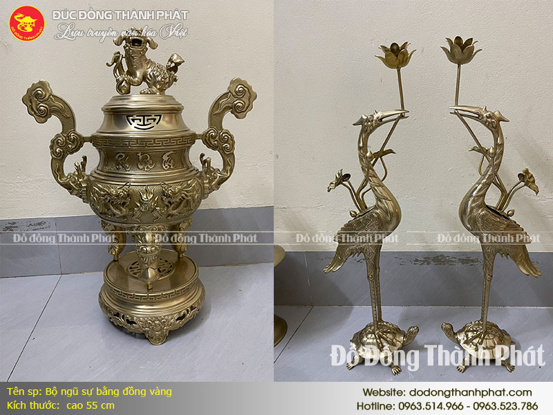 Quy cách chế tác bộ Ngũ Sự bằng đồng đúc thủ công 55cm