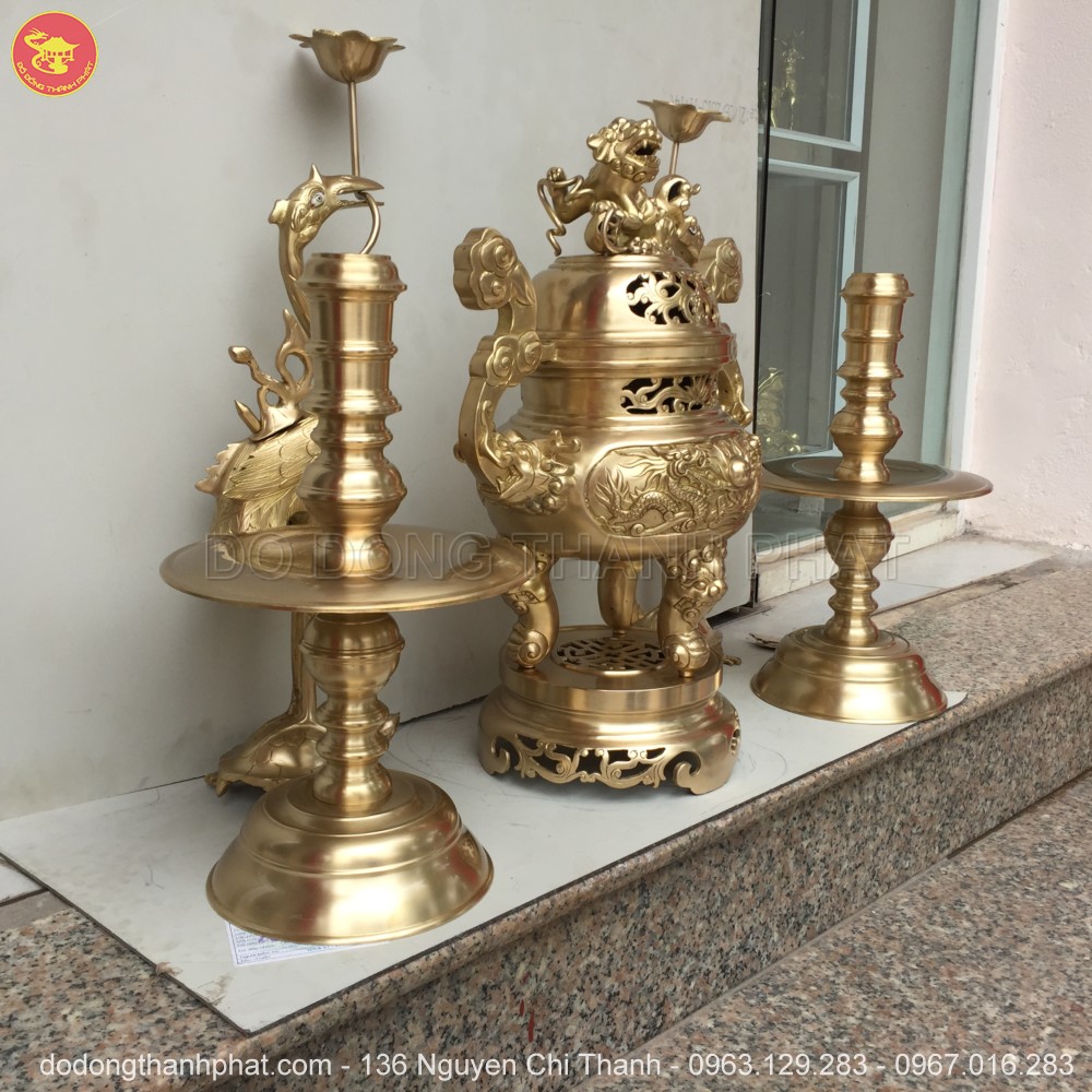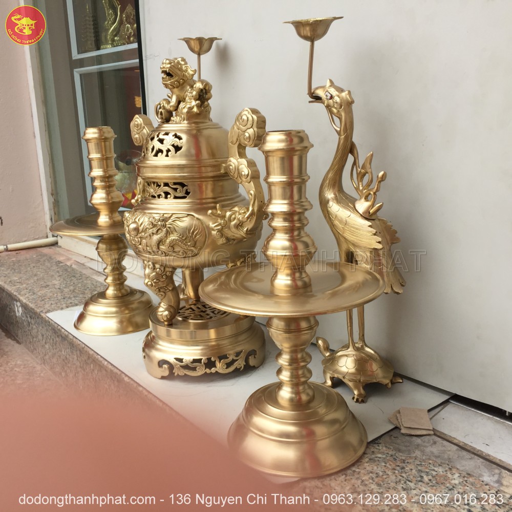Tên đầy đủ: Bộ ngũ sự bằng đồng vàng long phụng cao 50 cm