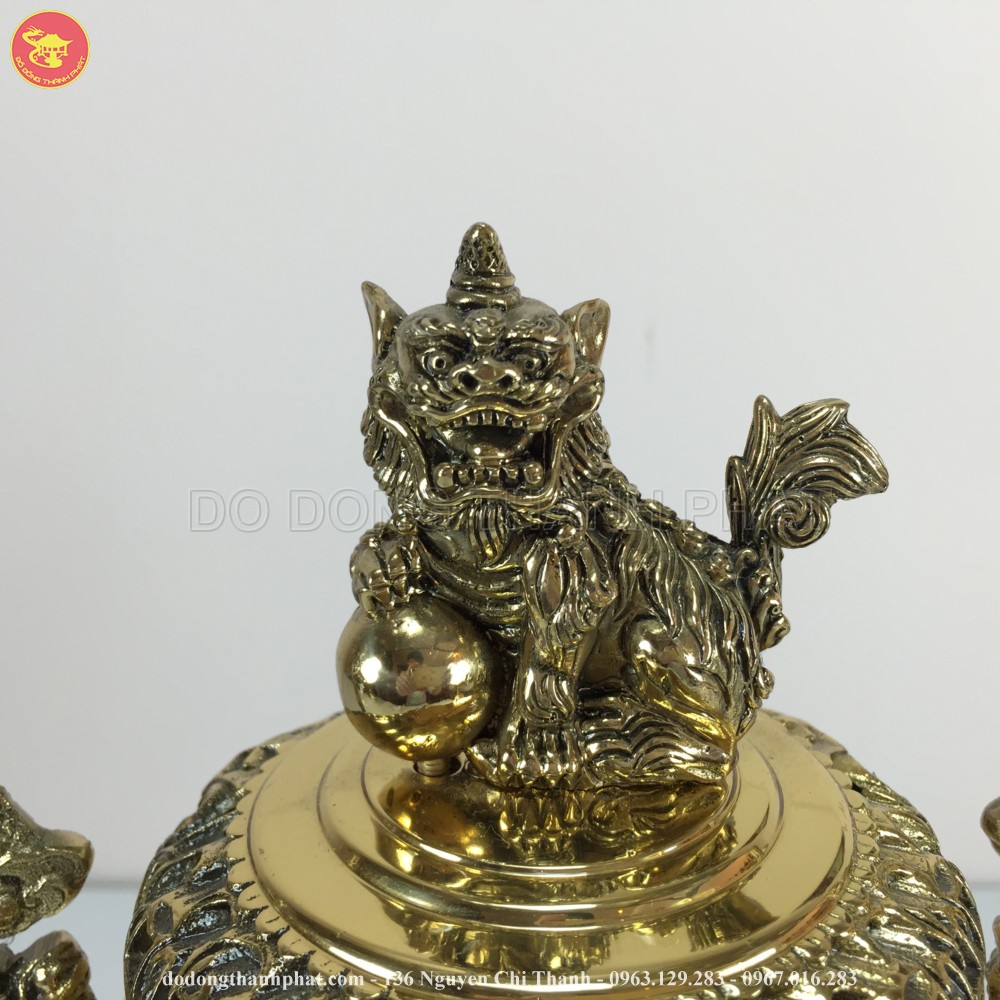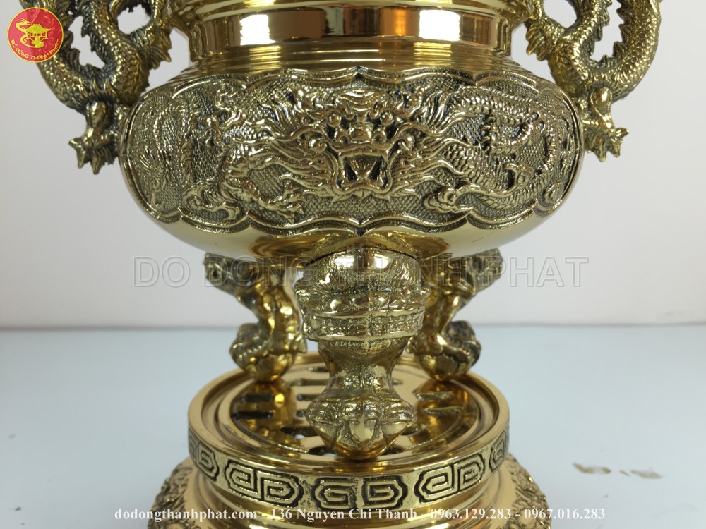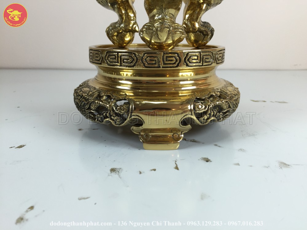 Chi tiết bộ tam sự đỉnh hạc giao long bằng đồng vàng cao 25 cm