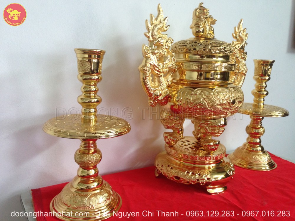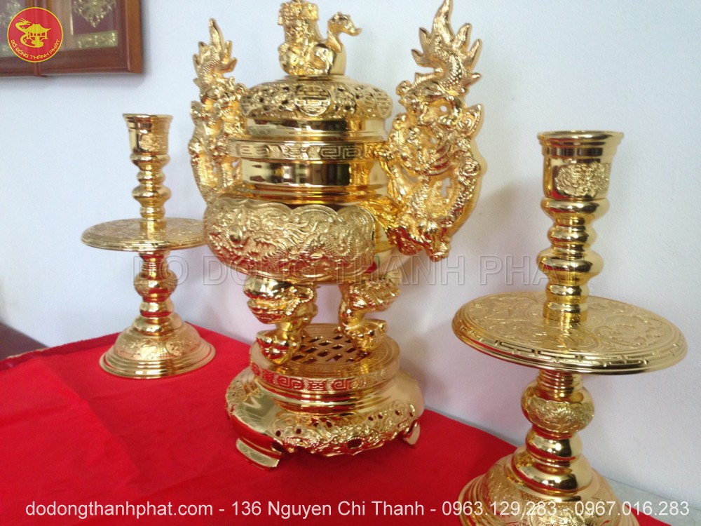 Chi tiết bộ tam sự đỉnh nến đồng mạ vàng 24k cao 56 cm