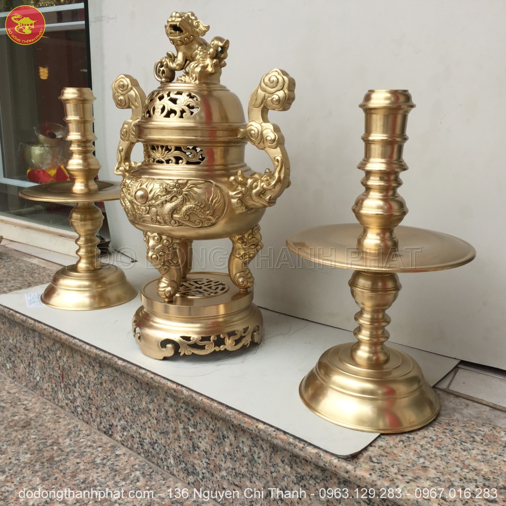 Đồ thờ bằng đồng từ lâu đã được người Việt Nam đặc biệt ưa chuộng không chỉ bởi vẻ sang trọng của nó mang lại mà nó còn mang tính tâm linh cao đã từ lâu đời. Bàn thờ gia tiên chắc hẳn không thể thiếu được những vật dụng như: đỉnh đồng, và chân nến đồng…Đặc biệt với bộ ngũ sự bằng đồng được bàn tay của các nghệ nhân đúc từ đồng vàng nguyên chất, khảm vàng 24k nguyên chất, bàn thờ gia tiên, từ đường sẽ trở nên đặc biệt sang trọng ấm áp và gần gũi..