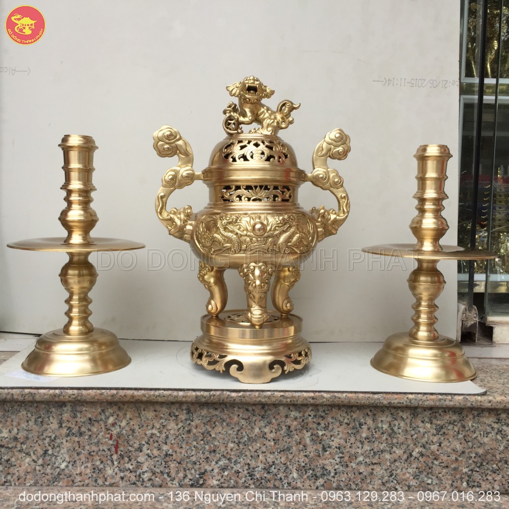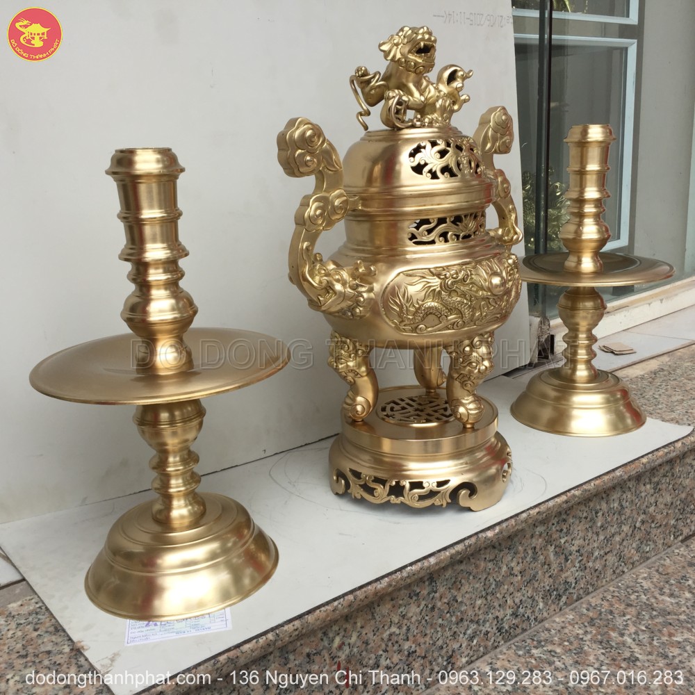 Tên đầy đủ: Bộ tam sự đỉnh nến đồng vàng long phụng cao 50 cm