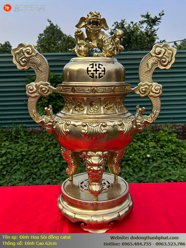 Thưa các bác, giữa muôn vàn các dòng đồ thờ bằng đồng đang bày bán ngoài kia, để tìm được một bộ vật phẩm vừa ý, xứng đáng với số tiền mình bỏ ra và đặc biệt là phải "có hồn", quả thực không phải chuyện dễ dàng. Hiểu được nỗi trăn trở ấy của những người gia trưởng trong gia đình, Đồ Đồng Thành Phát luôn gửi gắm vào từng bộ tam sự hoa sòi 62cm những đặc điểm ưu việt, được chắt lọc từ tinh hoa làng nghề đúc đồng truyền thống.
