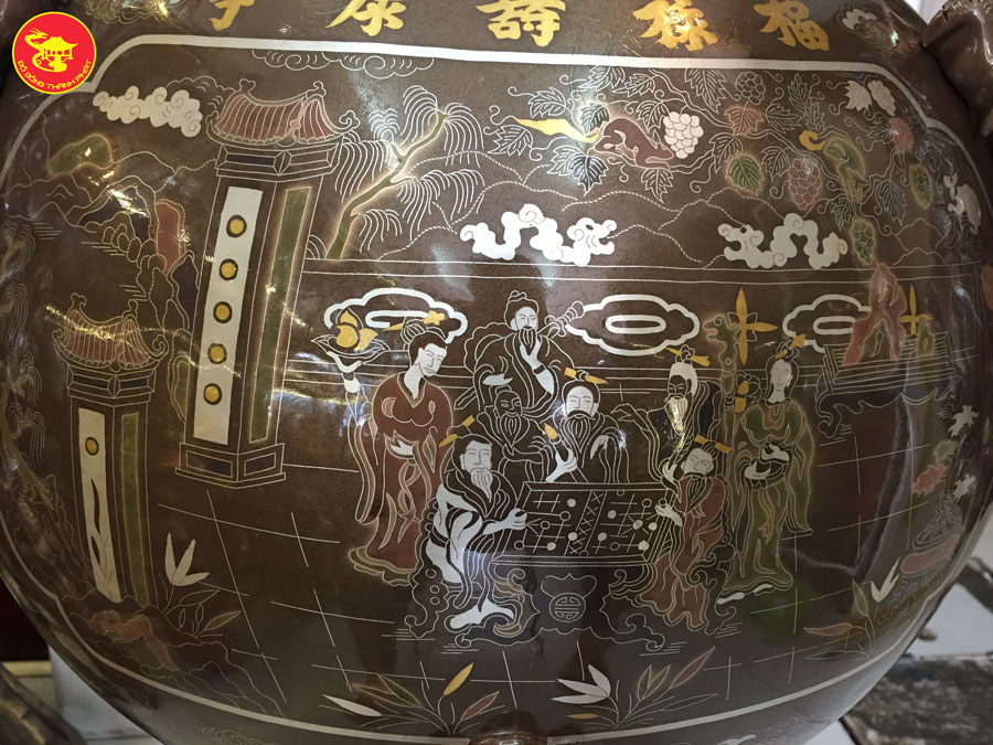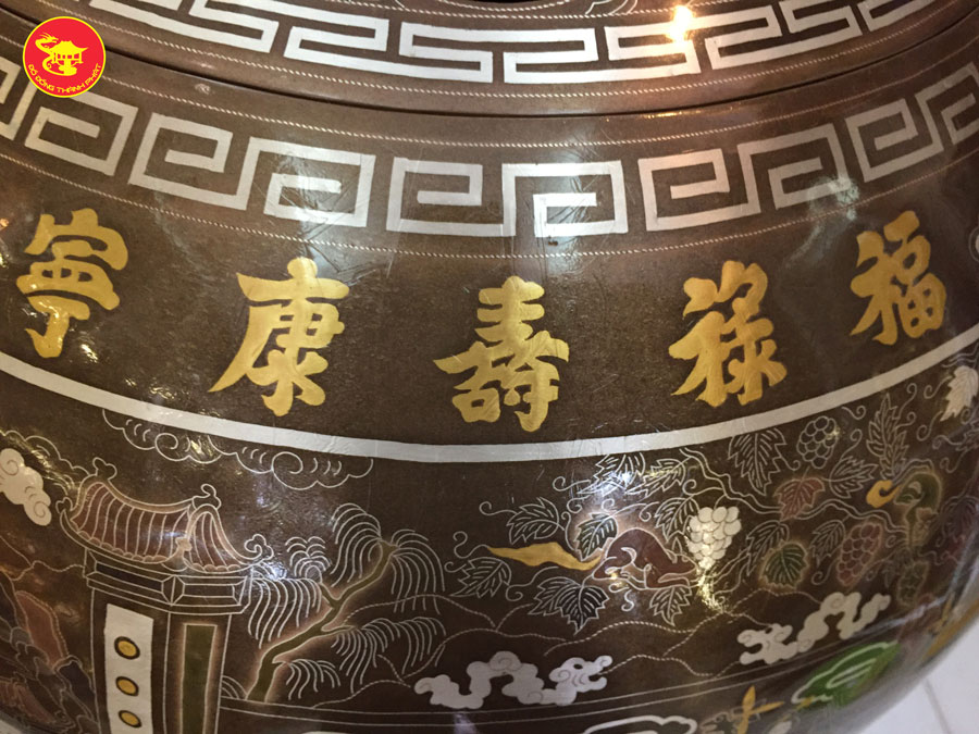 - Hình ảnh chụp cận diện 5 chữ hán được khảm vàng 9999 là " Phúc - Lộc - Thọ - Khang - Ninh".