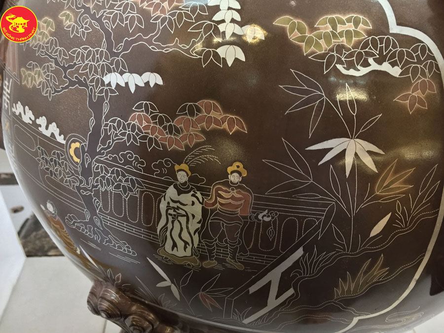 Đỉnh Tròn Tam Nghê Bằng Đồng Khảm Tam Khí Đẹp.