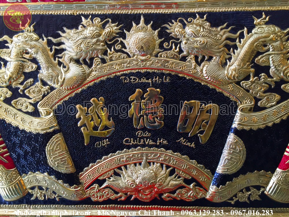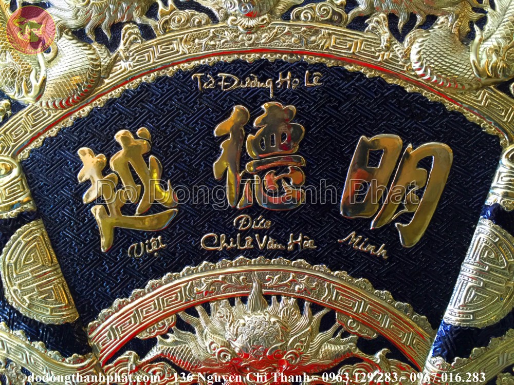 Trên hoành phi được các nghệ nhân khảm ba chữ Nôm " Minh Đức Việt " và tên dòng họ được khảm nhỏ ở trên cùng với đó là hình song long trầu nguyệt bên cạnh là các nét hoa văn tinh xảo.