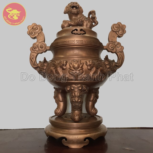 Hình ảnh Đỉnh đồng song long trầu nguyệt giả cổ đồng hun cao 55 cm