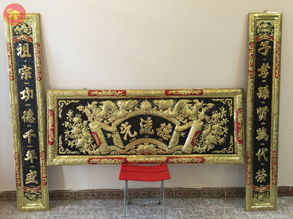 Hình ảnh Bộ hoành phi câu đối song long trầu nguyệt đồng vàng