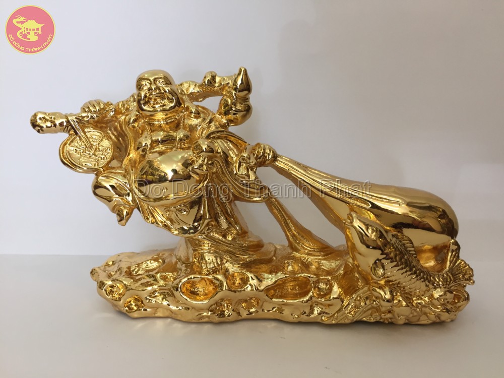 Hình ảnh Quà tặng bằng đồng phật Di Lặc cưỡi cá chép bằng đồng vàng