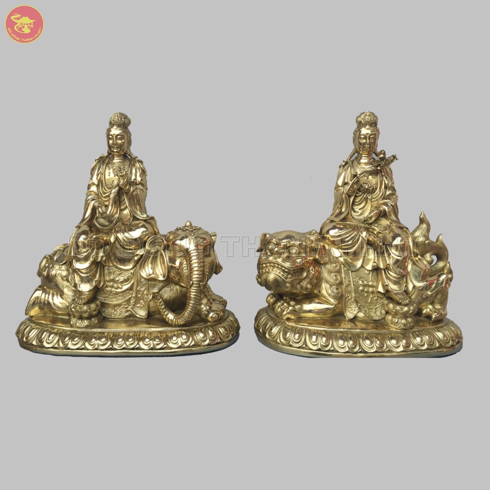 Hình ảnh Tượng phật tát văn thù phổ hiền đồng vàng cao 43 cm