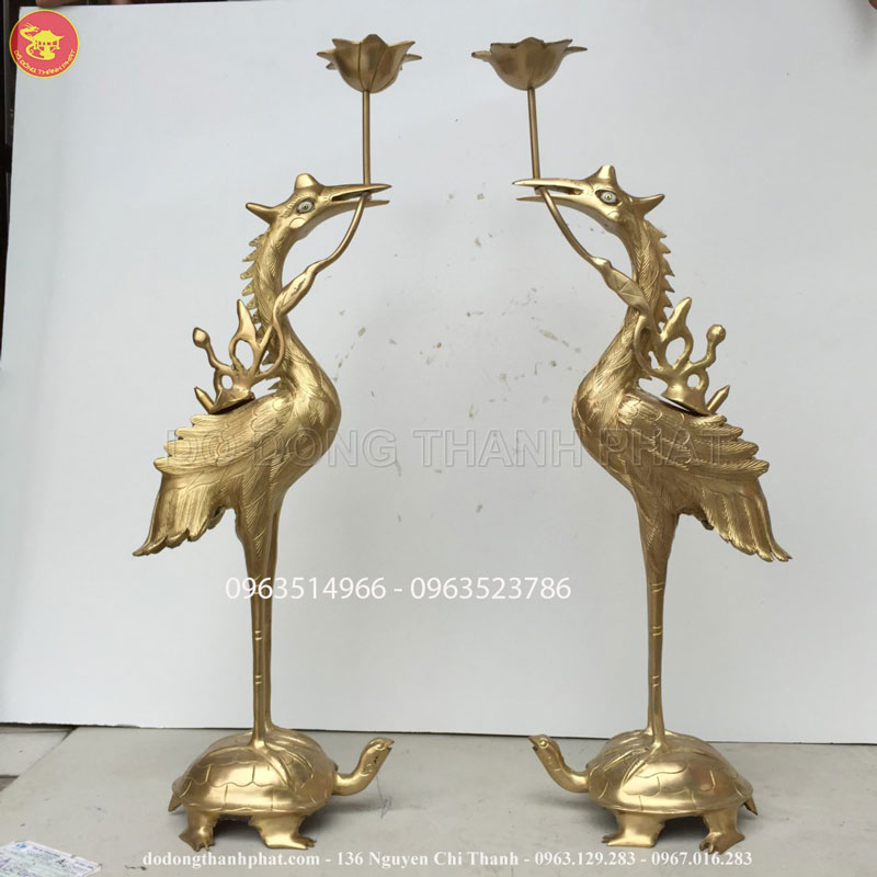 Đôi hạc đứng trên mai rùa đồng vàng cao 50cm