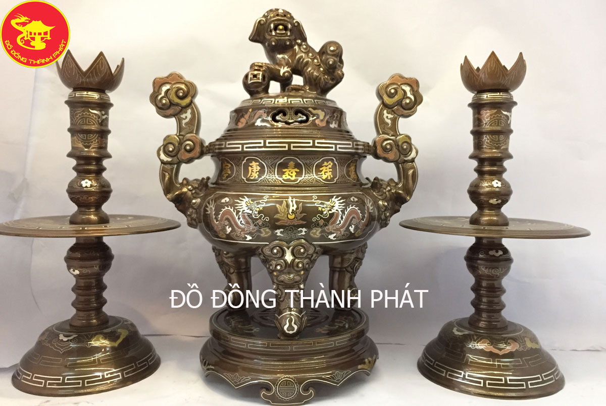 Bộ thờ bằng đồng tam sự ngũ sắc được chạm rất tinh xảo