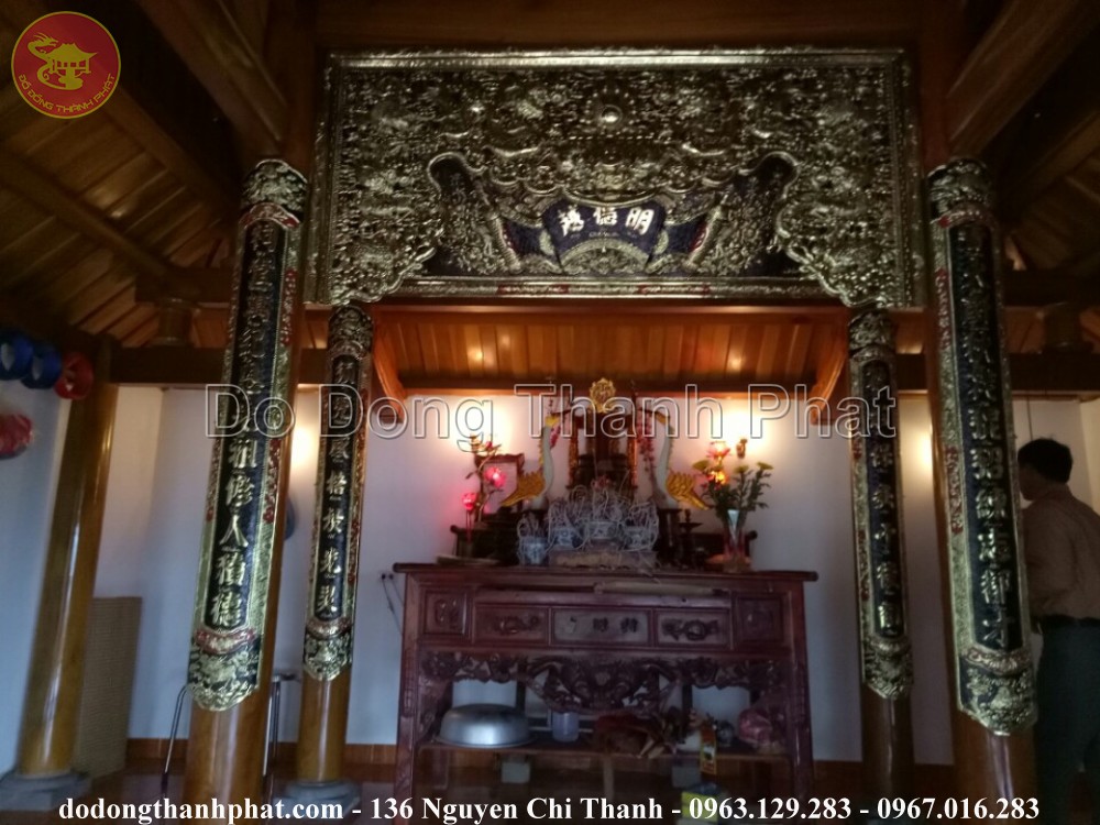 Đại tự hoành phi câu đối đồng vàng treo phòng thờ tổ tiên