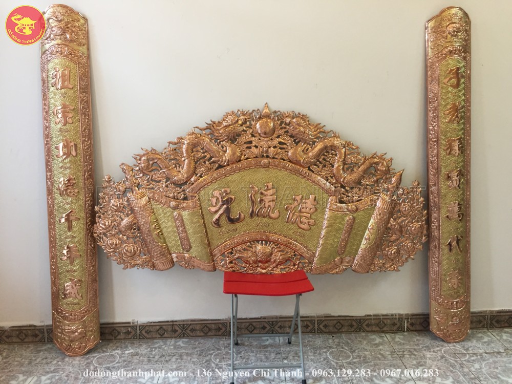 Hình ảnh: Bộ Hoành Phi Câu Đối Đồng vàng Dài 1,55m