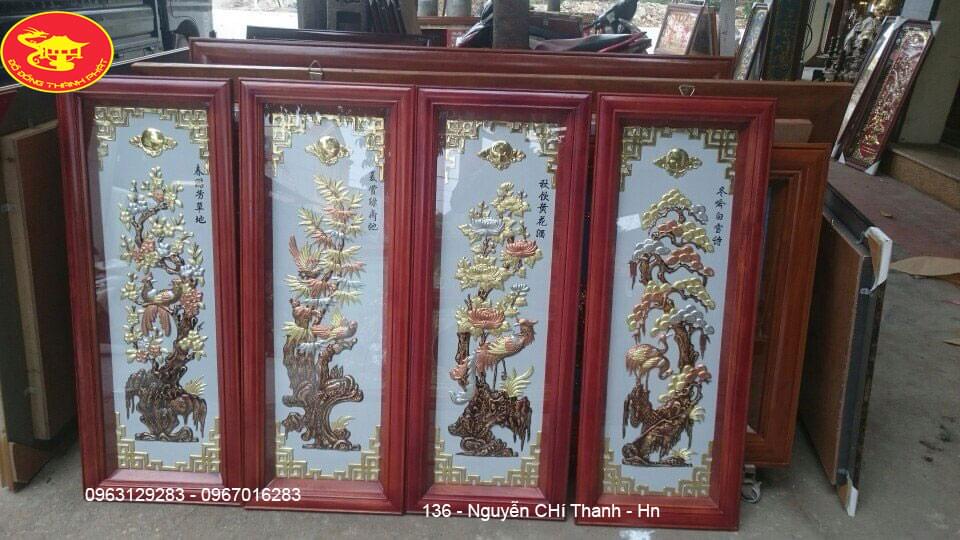 Hình ảnh Tranh Đồng Tứ Quý Khung Gụ Hun Giả Cổ Đẹp