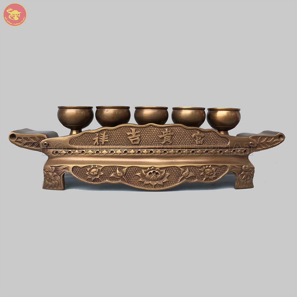Hình ảnh Bộ ngai 5 chén bằng đồng hun xanh giả cổ