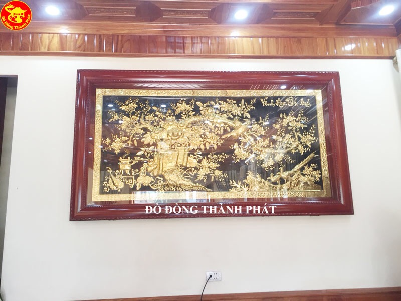 Mẫu Tranh Đồng Vinh Hoa Phú Quý Mạ Vàng 24 k Nền Đen Dài 2,31 m Rộng 1,27 m Lương Sơn Hòa Bình.
