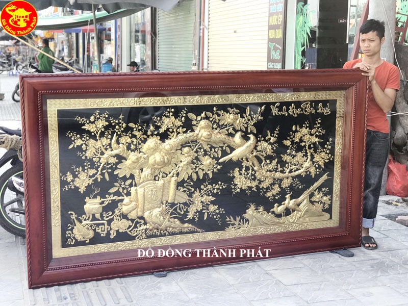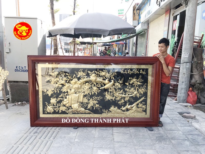 - Phương pháp sản xuất: Tranh được nghệ nhân Thành Phát gò đồng 100% thủ công, trạm khắc tỉ mỉ từng họa tiết hoa văn.