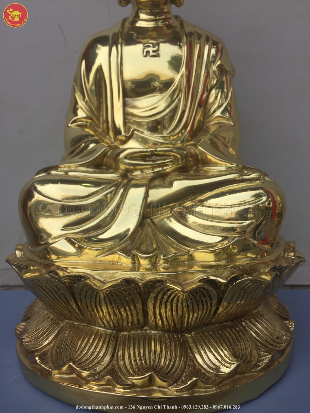 Chi tiết nổi bật: Tượng đồng mỹ nghệ- tượng phật bằng đồng A Di Đà được các nghệ nhân Thành Phát đúc bằng đồng vàng nguyên chất thủ công với các chi tiết nét chạm khảm nổi bật, tinh xảo qua hình ảnh đài sen, nơi mà phật A Di Đà ngồi ở trên. Hình tượng phật A Di Đà 2 tay đan nhẹ vào nhau ngồi thiền trong tư thế rất đặc biệt mang sắc thái thanh tịnh và bình yên.