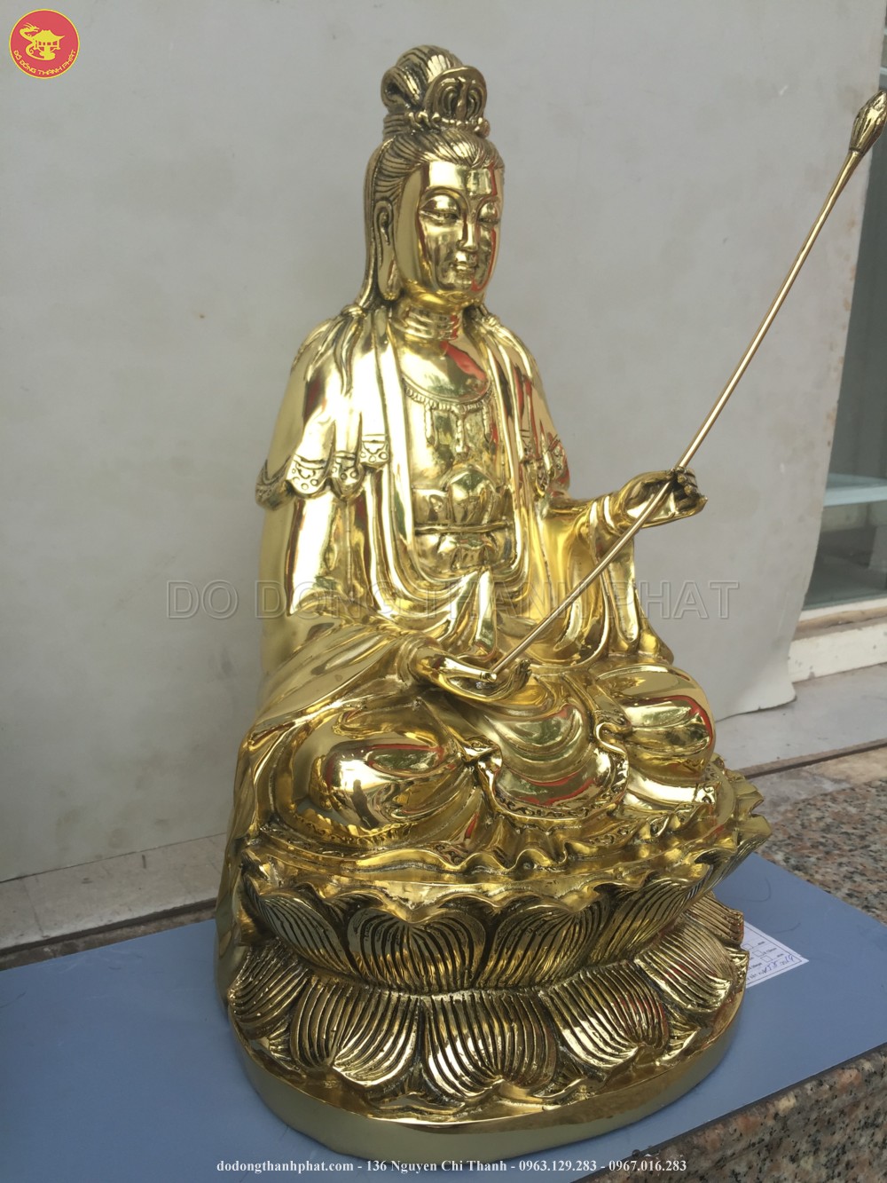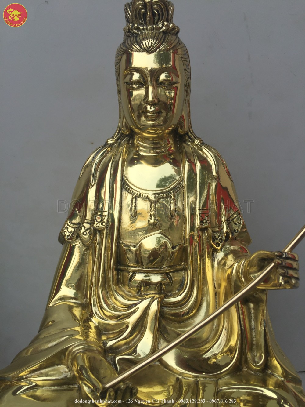 Hình ảnh chi tiết tượng phật Bồ Tát Quan Thế Chí đồng vàng cao 39 cm