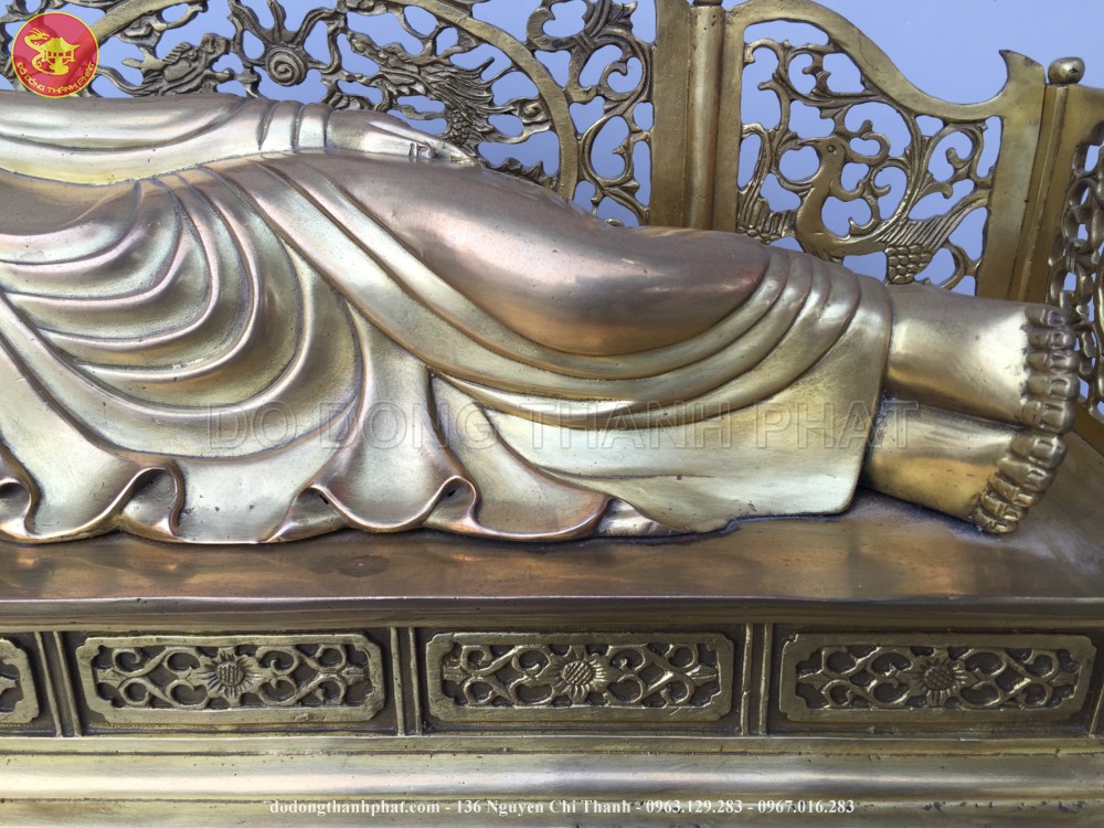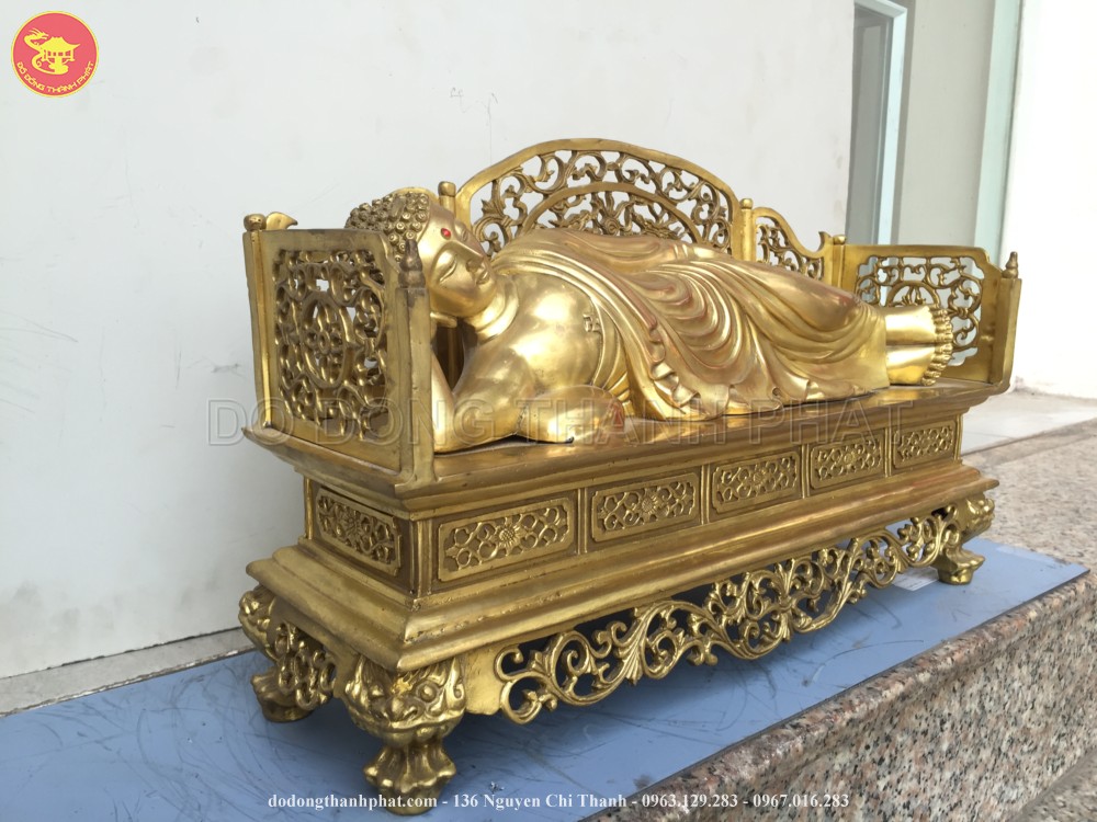 Tượng phật Như Lai nhập niết bàn được đúc thủ công truyền thống bằng tay với nhiều năm kinh nghiệm trong nghề của các nghệ nhân đúc đồng Thành Phát. Tượng được đúc bằng đồng cao cấp, tượng có chiều cao là 27 cm và có chiều dài là 45 cm đang nằm niết bàn. Các hoa văn trên tượng được chạm khảm rất tinh xảo và chi tiết, tỉ mỉ.