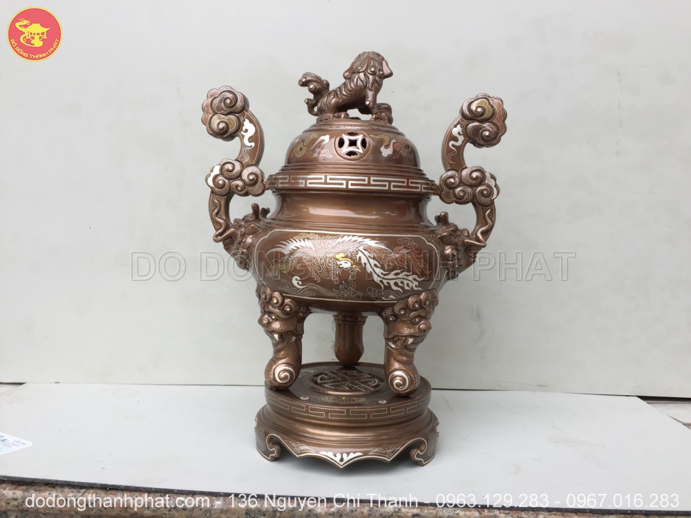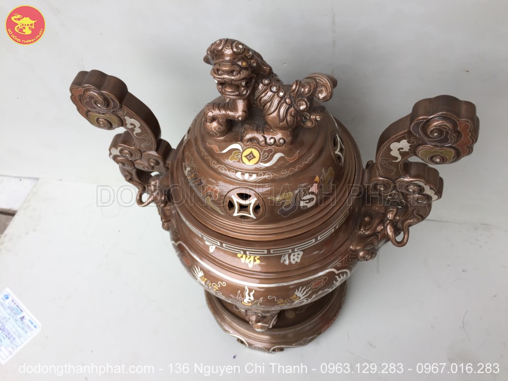 Đỉnh đồng khảm ngũ sắc 1 chữ vàng cao 40 cm bao gồm: