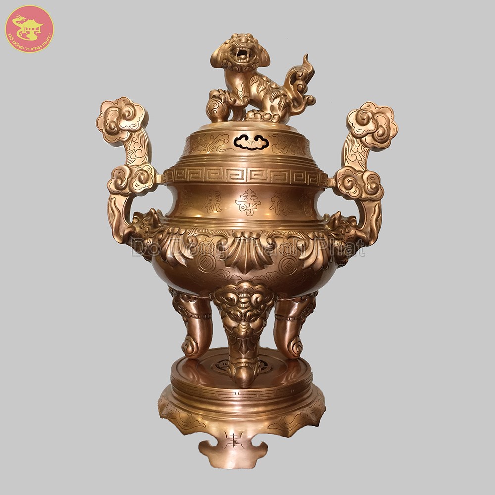- Chất liệu: Đồng đỏ nguyên khối rồi mang đi hun thành màu nâu giả cổ