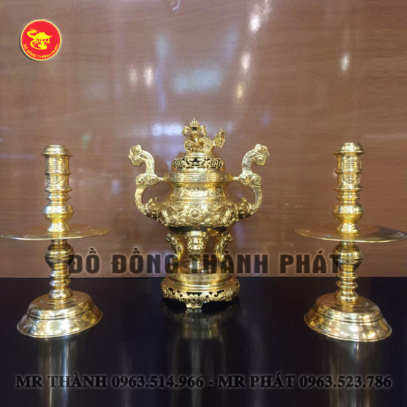 - Tên sản phẩm: Bộ tam sự đỉnh nến bằng đồng mạ vàng 9999 cao cấp
